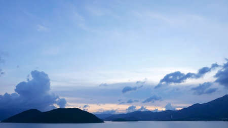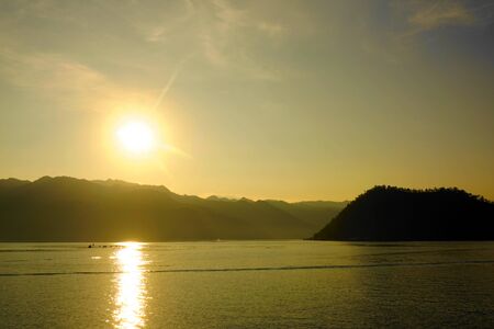 Sunset over the sea and mountains in the background, Thailand.