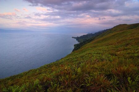 Lake Toba at sunset - landscape in Tuktuk, North Sumattra, Indonesia. Lake Toba is a popular tourist destination in Sumatra, Indonesia.