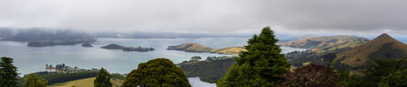 Beautiful view over the Otago harbor on a sunny day. Dunedin, New Zealand