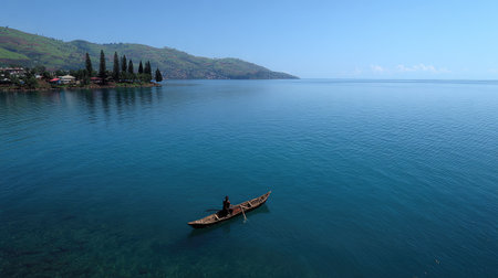 Cruise on Lake Toba in Sumatra, Indonesia. It is the largest and deepest volcanic crater lake in the world.