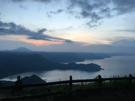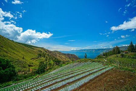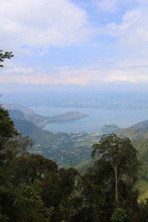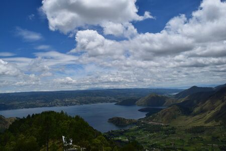 Beautiful Panoramic nature view of lake Toba from Berastagi, Medan, Indonesia.