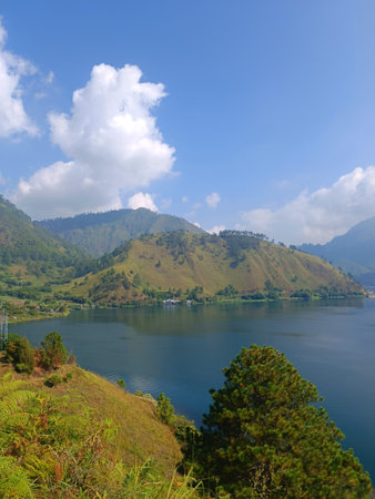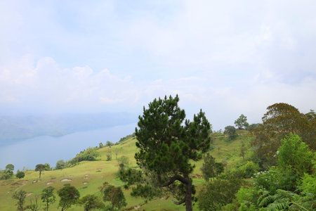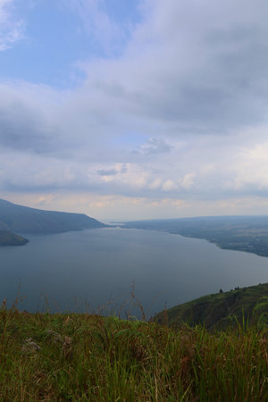 panoramic beauty of the landscape of Lake Toba, North Sumatra, Indonesia.