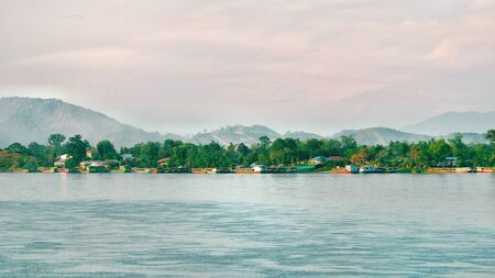 Mountains, lakes and the early morning fog .beautiful landscape in Kanchanaburi Thailand .