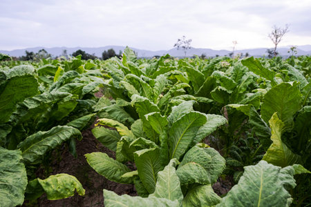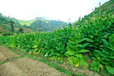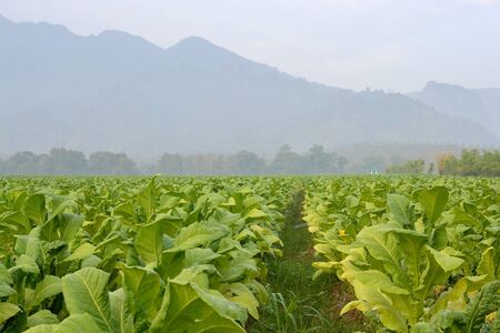 Scenery view of Tobacco plantation in Chiang Rai province of Thailand. Tobacco is a plant grown for its leaves, which are dried and fermented before being used.