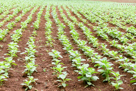 View of young green tobacco plant in field at Sukhothai province northern of Thailand