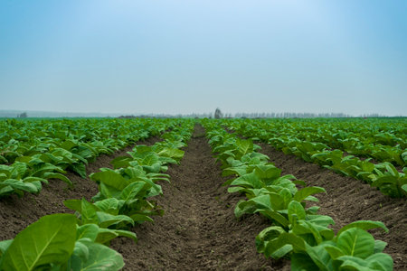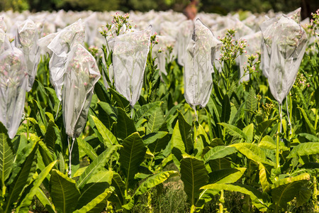 Tobacco plants growing in the fields, Agriculture of Tobacco Industry.