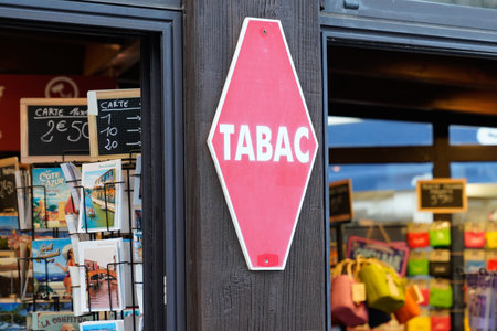 Bordeaux , Aquitaine France - 07 04 2022 : tabac french logo brand and sign text front of door entrance wall france store tobacco shop facade