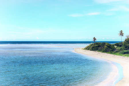Beautiful tropical beach with palm trees and turquoise water in Bali, Indonesia