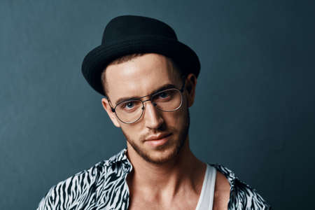 Creative male portrait. Handsome young man posing for the camera. Hipster, stylish men's hairstyle and strict look