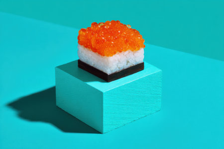 Experience the vibrant beauty of salmon roe in this elegant sushi presentation. A luxurious treat highlighting Japanese culinary artistry in every bite.