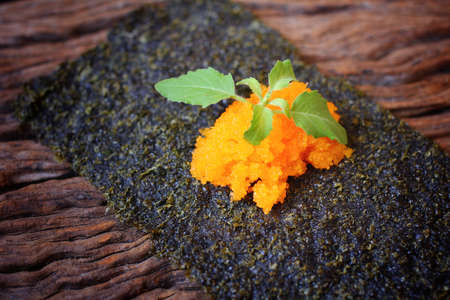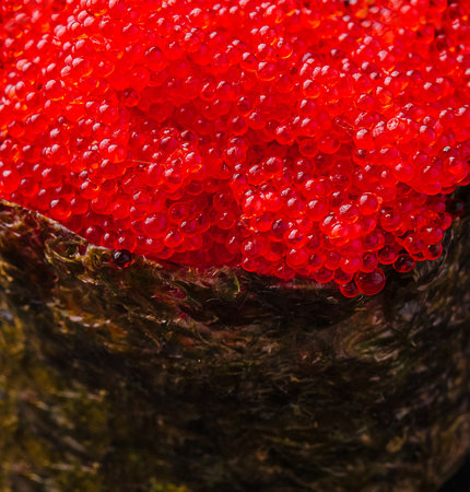 Tobiko, Seasoned Orange Flying Fish Roe Egg for Sushi. Japanese Food