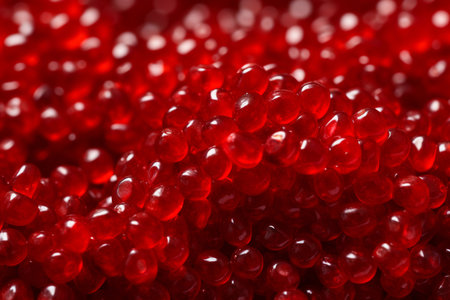 Macro texture of delicious fresh salmon fish red caviar, close up view. AI generated.