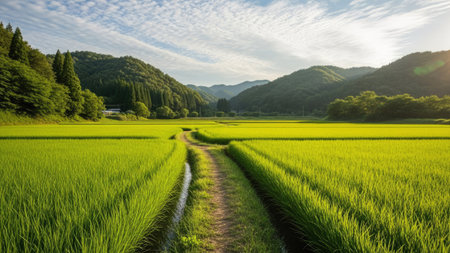 Rice field in the morning, Nagano Prefecture, Japan