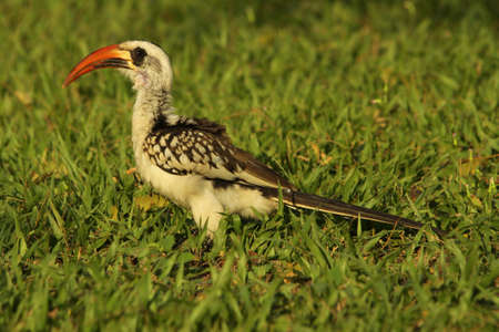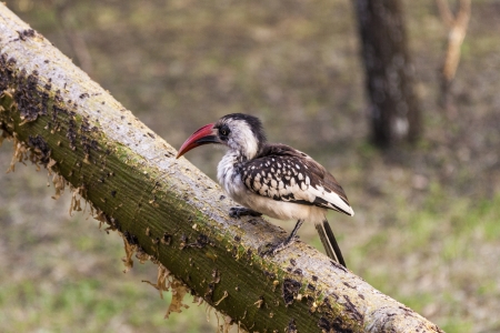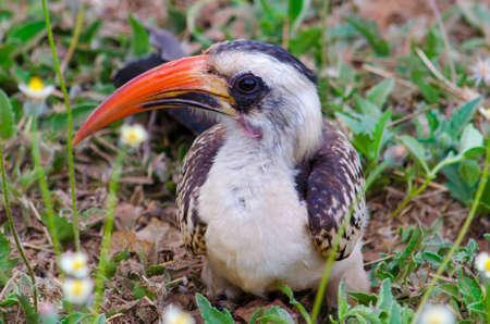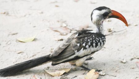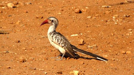 Red-billed hornbill on the ground in South Africa Kruger National Park