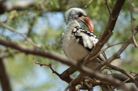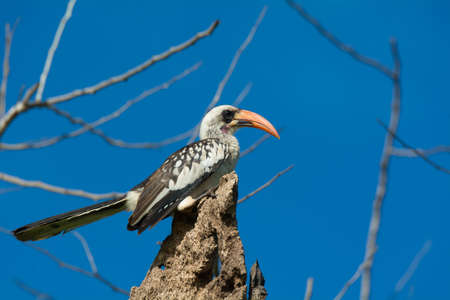A Von der Deckens Hornbill perched on a dry branch observing its environment, on the lookout for predators