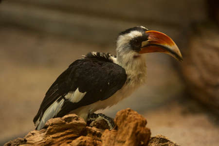 Oriental hornbill (Anthracoceros albirostris) freely live in nature is one of an attraction at Pangkor Island, Malaysia