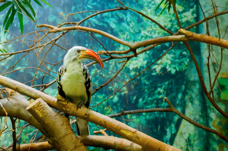 Wildlife and rainforest exotic tropical birds in a bird park.