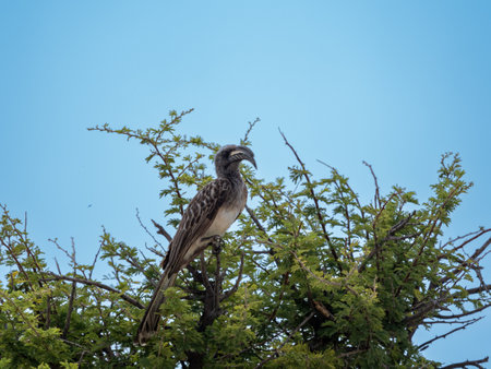 Hornbill at top of tree in Etosha National Park, Namibia, Africa.