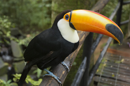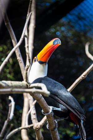 The Toco Toucan sitting on the branch of the tree in Iguacu National Park of the Iguazu Falls, one of the worlds largest and most impressive waterfalls, Foz de Iguacu, Parana State, Brazil