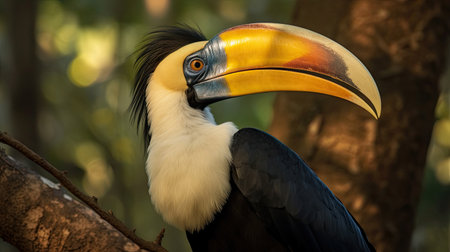 A Great Hornbill, also known as the great Indian hornbill or great pied hornbill, is one of the larger members of the hornbill family. Generative Ai