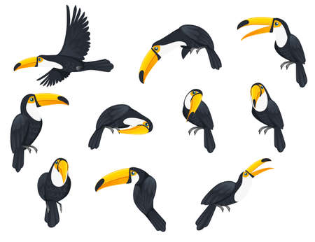 Toucan set. Vector illustration of tropical birds isolated on white.
