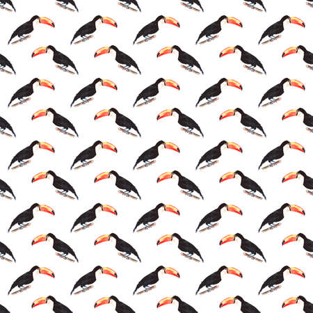 Bright wonderful beautiful lovely sophisticated jungle tropical black and white toucan bird diagonal pattern watercolor hand illustration