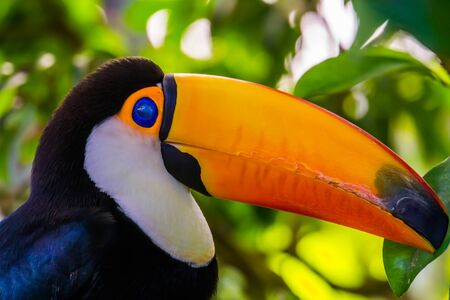 portrait of a toco toucan with its face in closeup, beautiful tropical bird specie from America