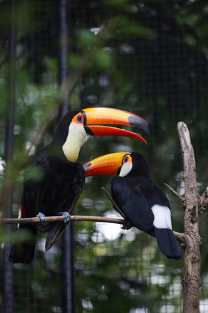 Toco toucan colorful bird in tropical nature jungle forest birds park and zoo in Foz do Iguacu State of Parana Brazil.