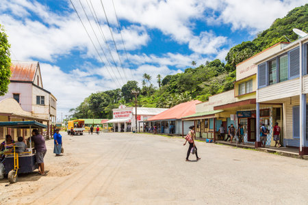 Levuka, Fiji - Jan 9 2015: Colourful vibrant street of old colonial capital of Fiji - Levuka town, Ovalau island, Lomaiviti archipelago, Fiji, Melanesia, Oceania, South Pacific Ocean. UNESCO heritage.