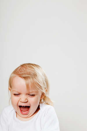 Little toddler girl laughing spontaneously while looking at you with showing her teeth