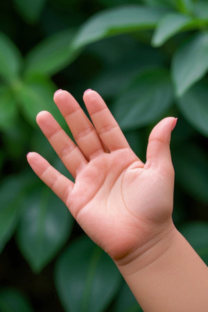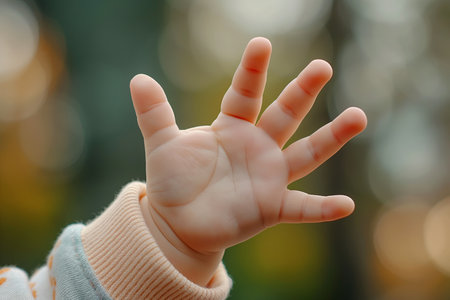 Baby is showing an open hand with five finge