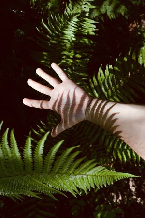 female hand park summer trees sun green grass nature