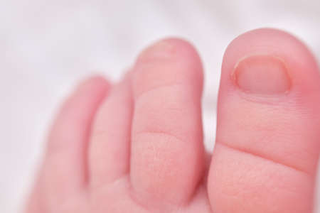 Toes on the foot of a newborn baby, close-up. Macro photo of a healthy toe of a child