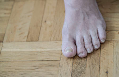 Closeup of a foot with arthritis, damaged nails because of fungus and athlete's foot after chemotherapy
