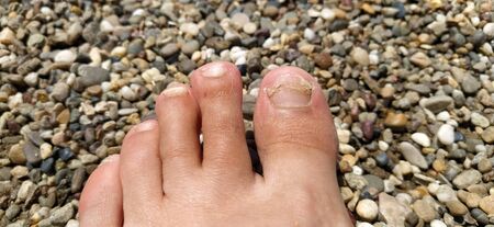 Toes with fungus - the concept of skin diseases in the summer on the beach.