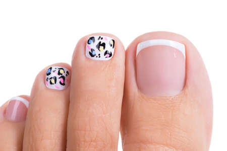 Beautiful woman's nails of legs with beautiful french manicure and art design