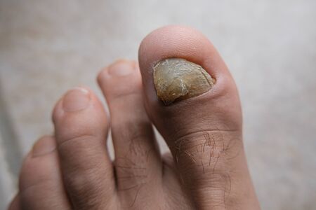 Fungus of nails on the big toe - dermatomycosis and onychomycosis, fungal infection macro photo.