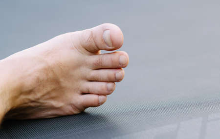 Close up view of toenail infection on hairy man foot