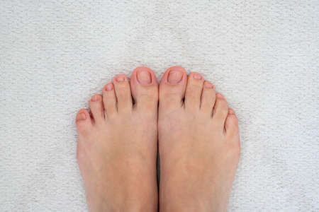 Closeup of female feet and toes on white background. Healthy feet concept