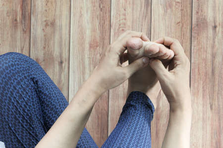 Close up on women feet and hand massage on injury spot.