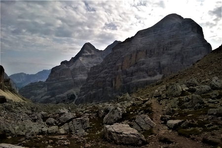 Dolomites: panoramic view of the Croda da Lago