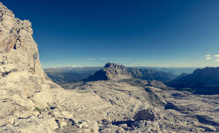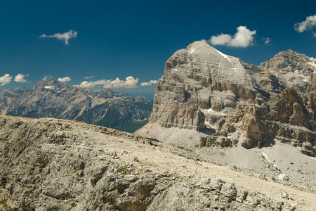View from the top of Lagazuoi with Lagazuoi mountain at background, Dolomites, Italy