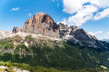 Tofana di Rozes peak view from Passo Falzarego, Dolomites in the Province of Belluno, Veneto, Italy