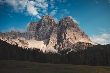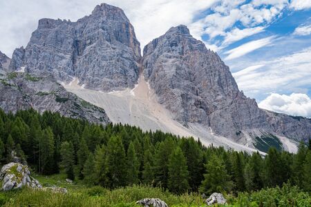Mountain Sasso di Santa Croce (translated Stone of Saint Cross) landscape in the Dolomites Italy