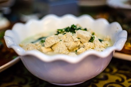 Slow food - Bean curd/tofu with green peas shot in studio