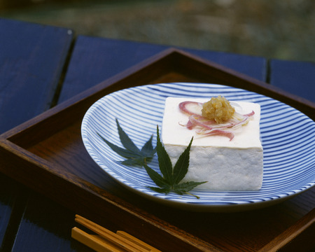 japanese food Tofu with soy sauce and spring onion