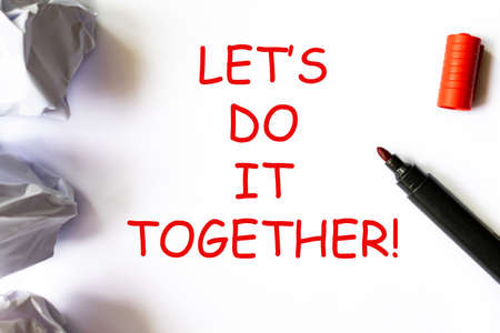 Let's do it together text on a white backround with red highlightr. Business startup or relationship concept.