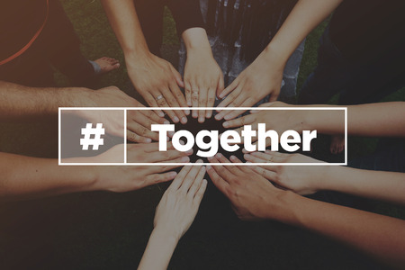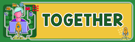 Text sign showing Together. Word Written on In proximity,union or collison with another person or things