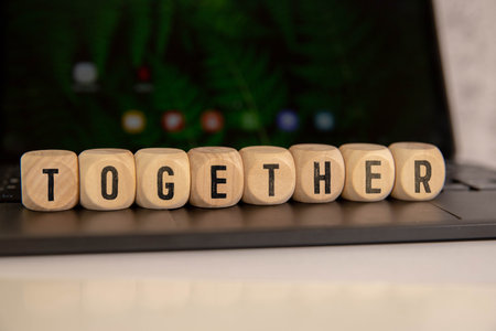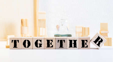 The image features the word TOGETHER spelled out with cubes, set against a softly lit background. This symbolizes unity and connection, perfect for themes of love and collaboration.