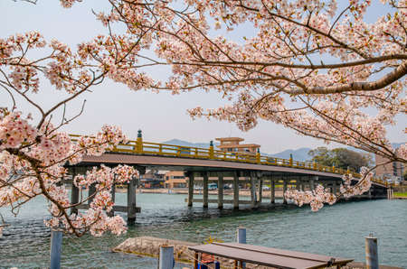 Togetsukyo Bridge in Arashiyama district, Kyoto, Japan in spring